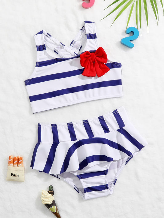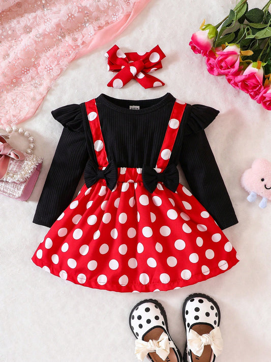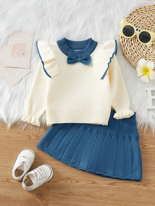 Bebé niña con lazo delantero ribete con fruncido Jersey & fruncido Falda de punto