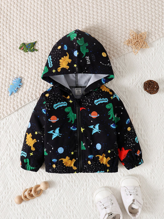 Bebé Cazadora con estampado de dinosaurio con cremallera con capucha