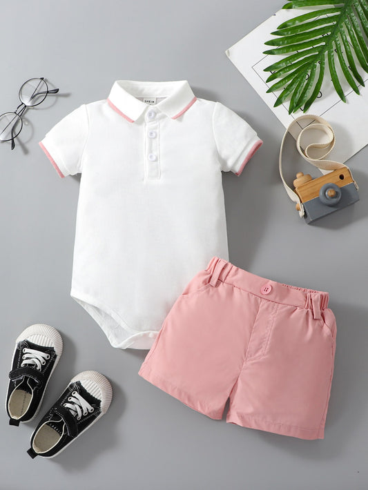 Bebé ribete en contraste de cuello polo Body & Shorts