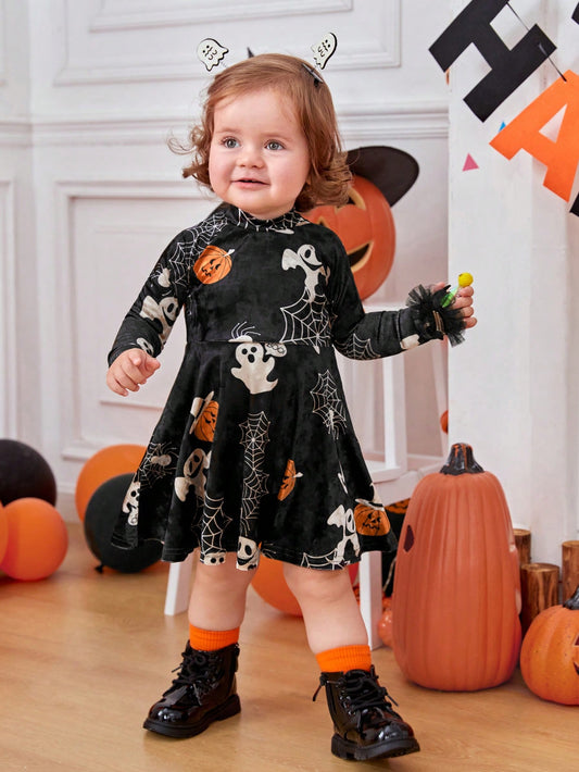 Vestido con estampado de halloween de cuello alto de terciopelo