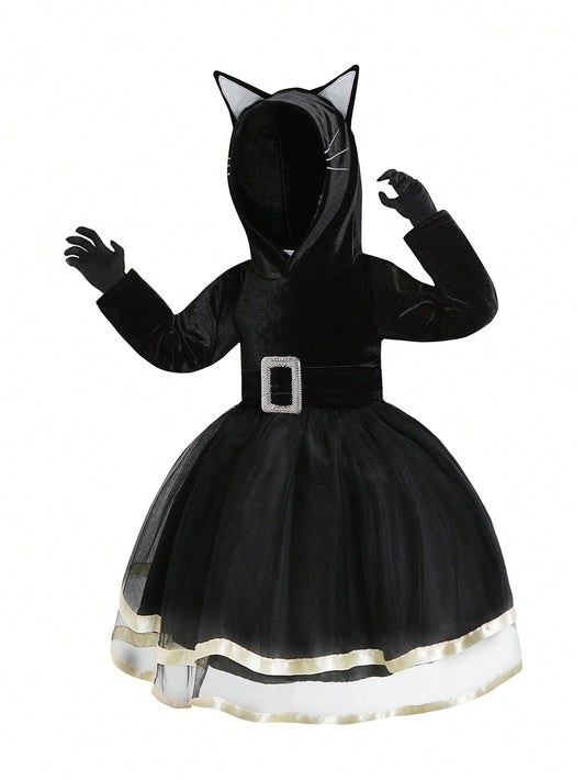 Disfraz Vestido con capucha con diseño de orejas 3D con malla bajo