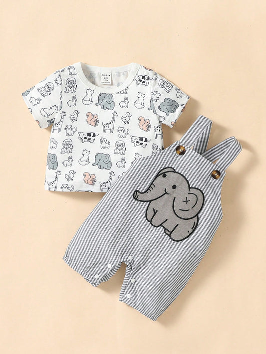 Bebé niño Camiseta con estampado de dibujos animados & Mono overol con estampado de rayas
