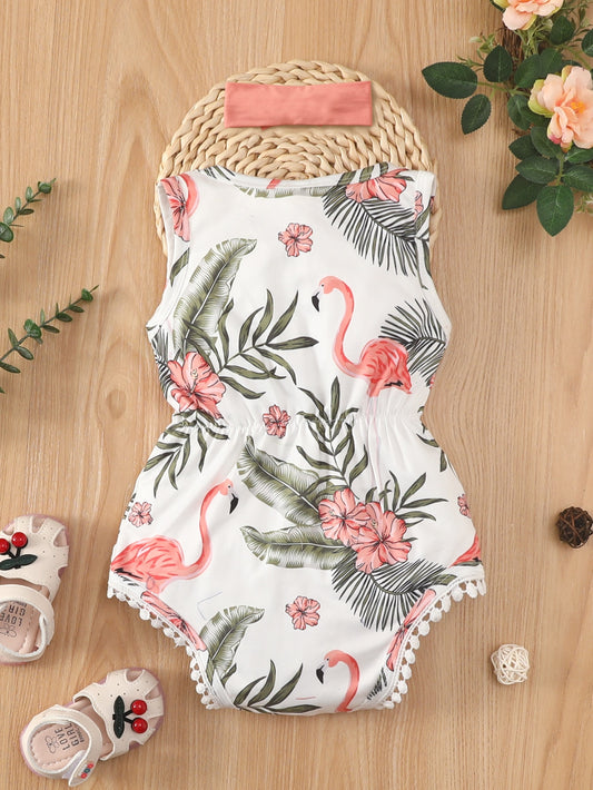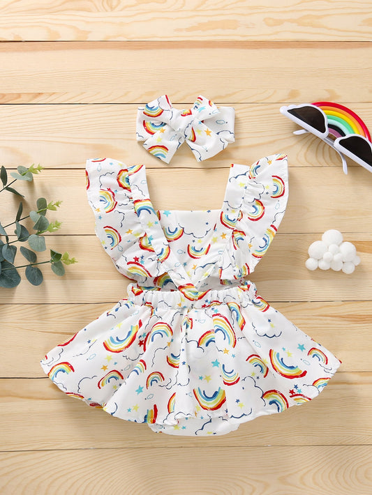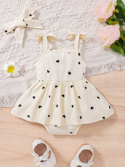 Bebé Vestido body de combinación de tirantes con estampado de corazón con banda cabeza