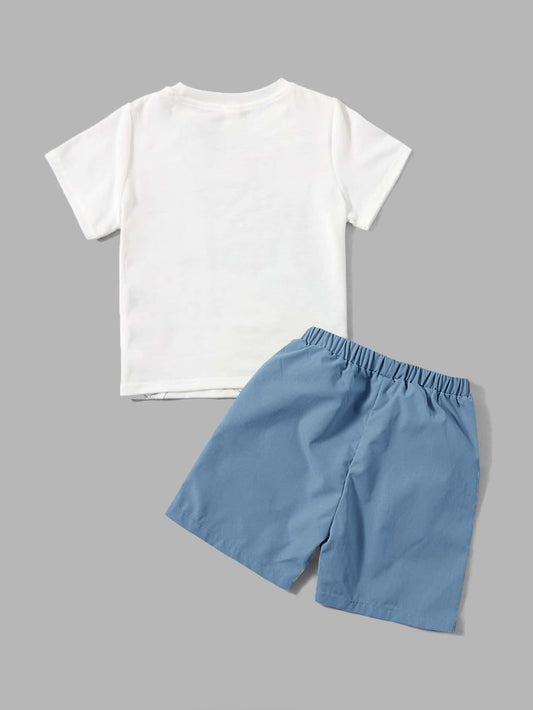Niñitos Conjunto shorts con camiseta con estampado de letra y dinosaurio