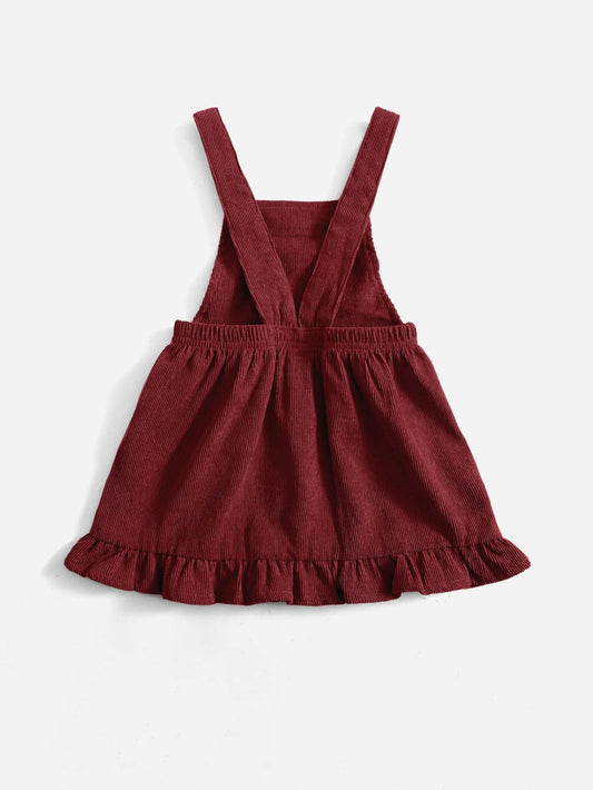 SHEIN Bebé Vestido overol con bordado de arcoíris bajo con fruncido de pana