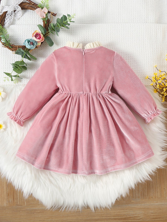 Bebé Vestido ribete con fruncido de manga con volante con lazo delantero