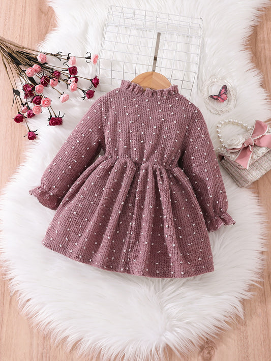 Bebé Vestido de lunares ribete con fruncido de manga con volante con lazo delantero
