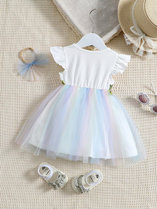 Bebé con diseño aplique de manga con volante de ombré Vestido de malla Diadema
