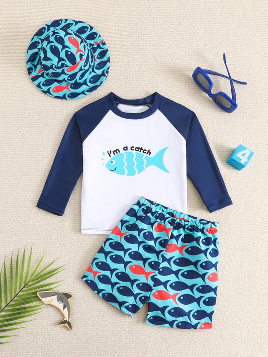 Traje de baño con estampado de pez con sombrero