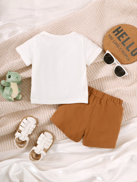 Bebé Shorts con camiseta con letra & con estampado de dinosaurio