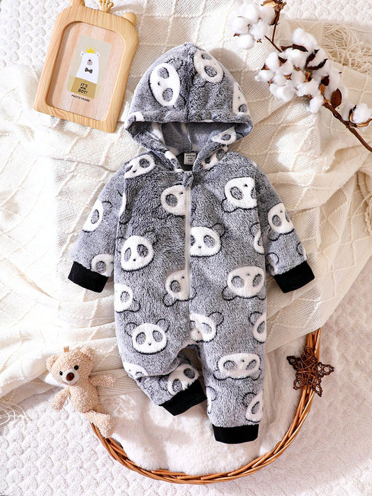Disfraz oso panda Bebé Mono de color combinado de manga raglán de franela sin Sombrero