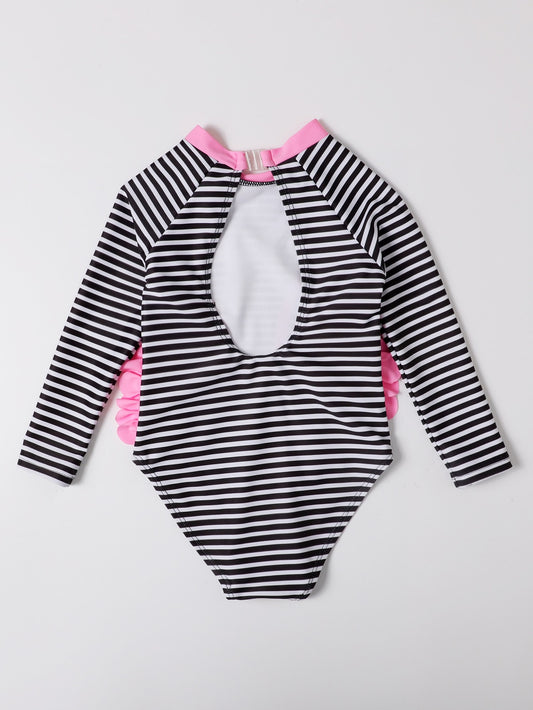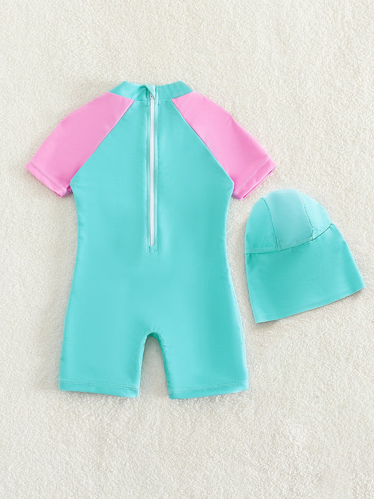 Bebé con estampado de dibujos animados de manga raglán Bañador una pieza & Gorro de natación