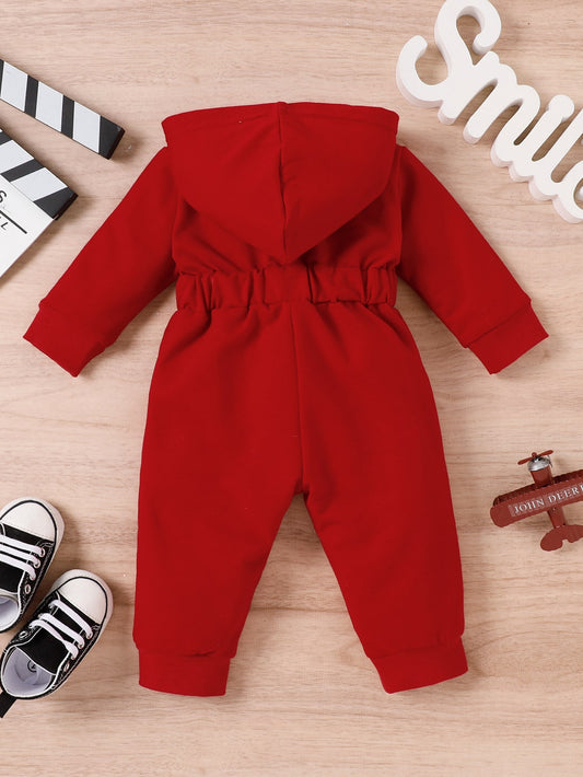 Bebé Mono con estampado de corazón con bolsillos oblicuos con capucha