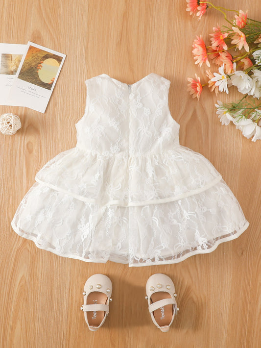 Bebé Vestido con lazo delantero bajo a capas con encaje
