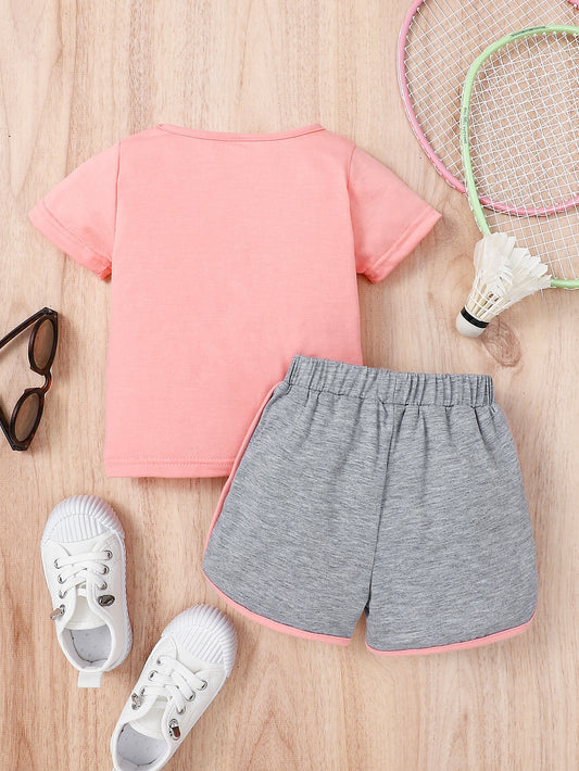 Bebé con estampado de corazón Top & unido en contraste Shorts deportivos