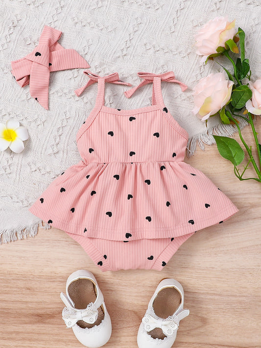 Bebé Vestido body de combinación de tirantes con estampado de corazón con banda cabeza