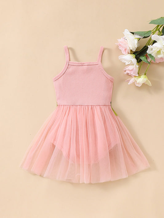 Bebé Vestido con encaje en contraste de talle alto de malla