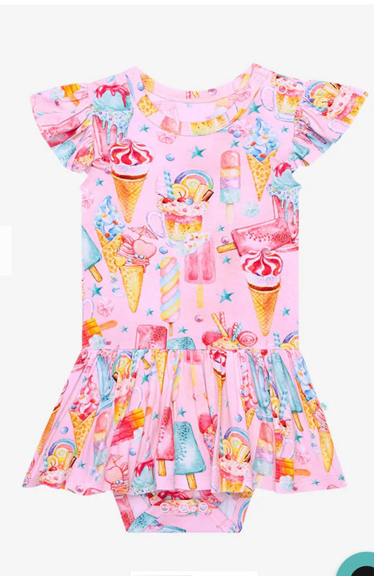 Niñitas Mono sisa con fruncido de cintura con nudo de guingán