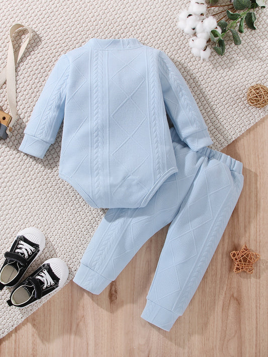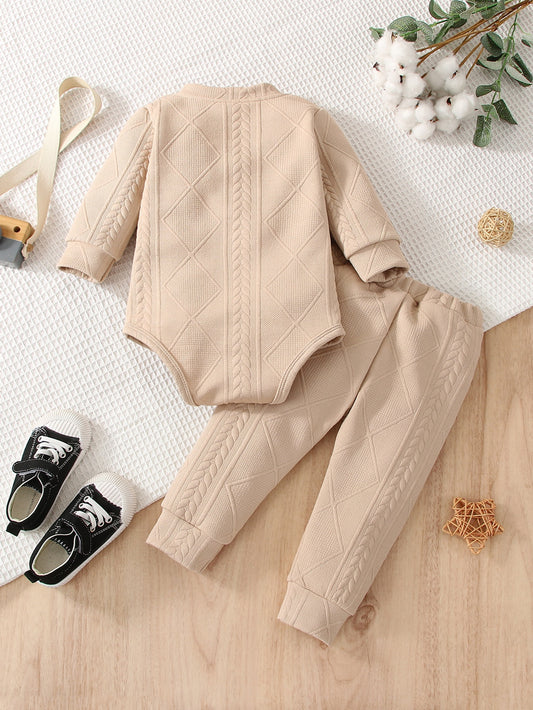 Bebé Body con textura de cable cuello béisbol con pantalones deportivos