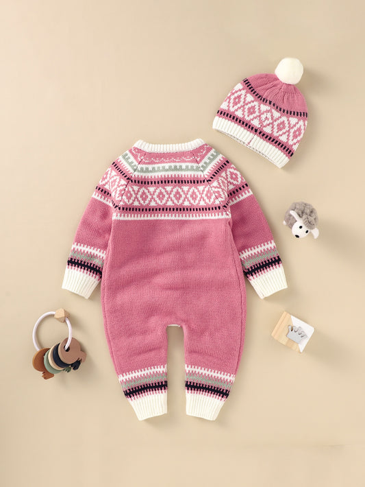 Bebé Mono con patrón geométrico tejido de cable & Sombrero sin camiseta