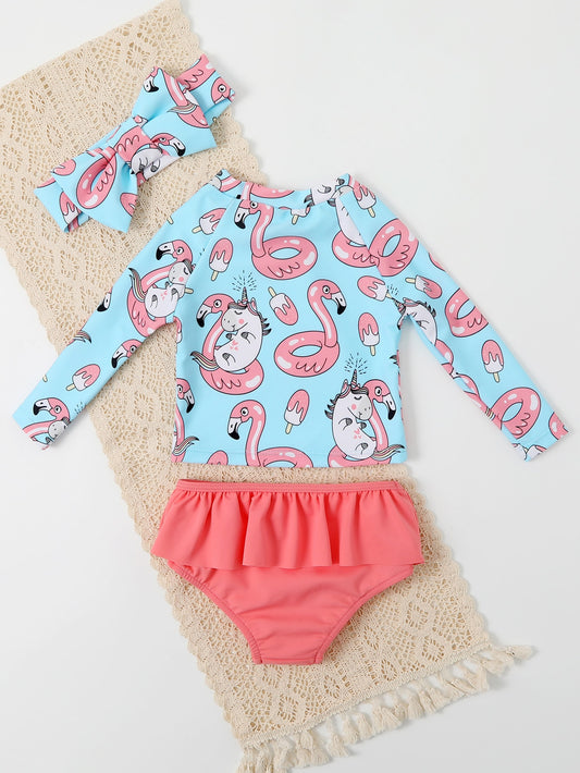Bebé Bañador bikini con estampado de dibujos animados bajo con fruncido con diadema