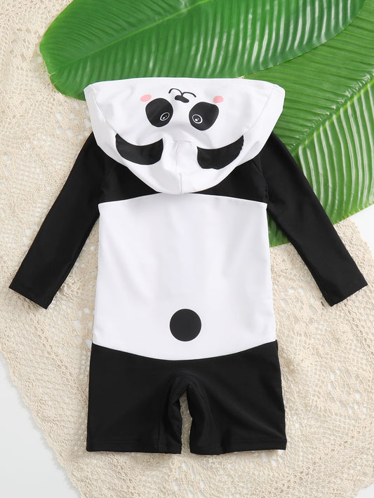 Bebé Bañador una pieza con estampado de panda de dibujos animados con cremallera delantera con capucha