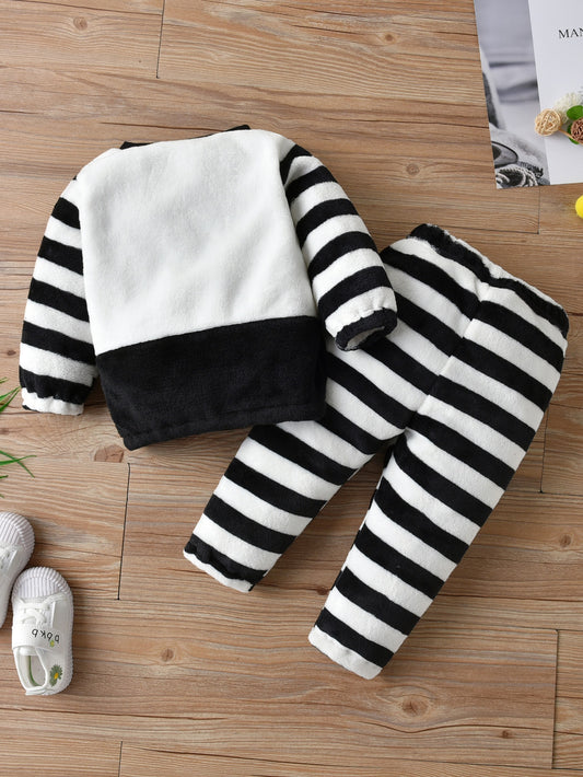 Top teddy con estampado de dibujos animados con pantalones de rayas