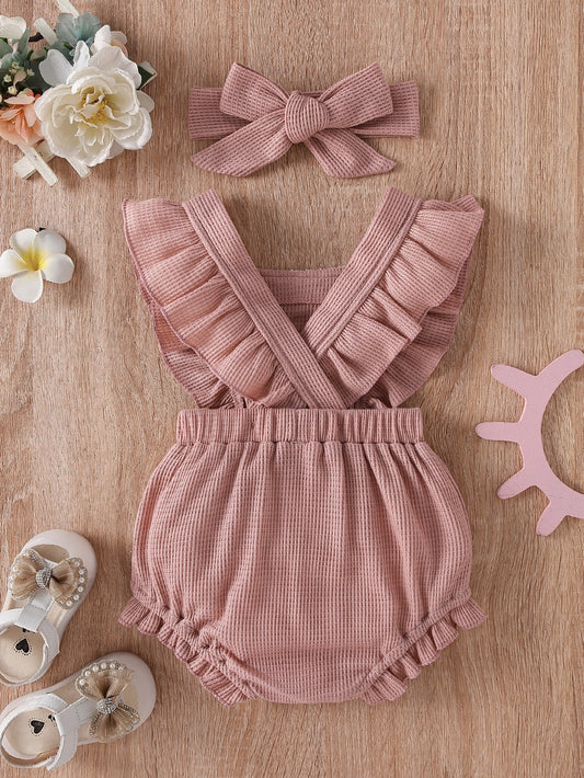 Bebé con encaje en contraste ribete con fruncido tejido waffle Body & Diadema