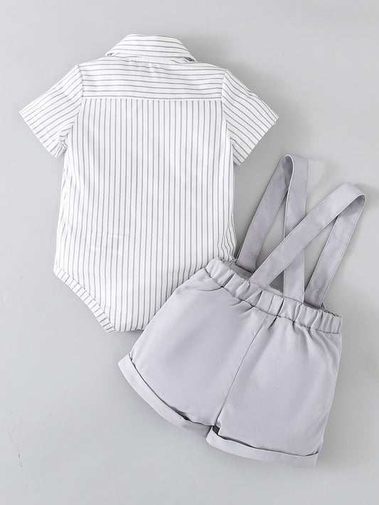 Bebé de rayas con lazo delantero Body camisero & tirantes Shorts