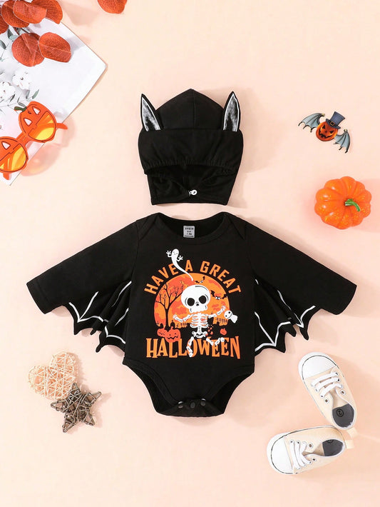 Bebé con estampado de halloween de manga murciélago Body & Sombrero