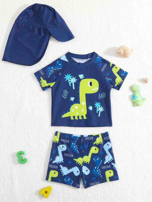 Conjunto de traje de baño para bebé niño con estampado de dinosaurio