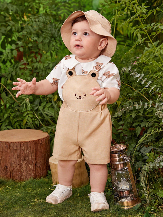 Bebé niño Top con estampado de oso & Shorts overol & Sombrero
