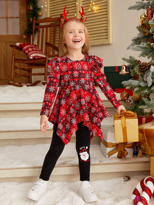 Niñas Leggings con top Navidad & con estampado de cuadros bajo asimétrico