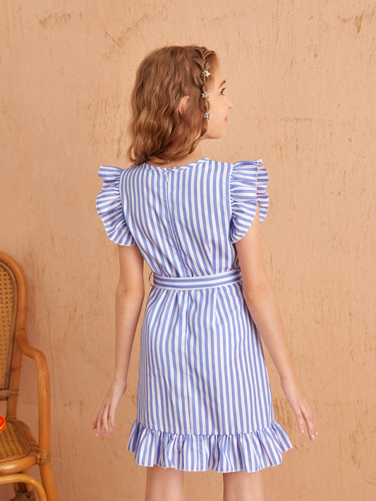 Vestido con cinturón bajo con fruncido cruzado de rayas