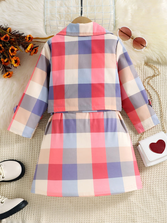 Niñas Cazadora de cuadros de doble botonadura & Vestido tank con cinturón