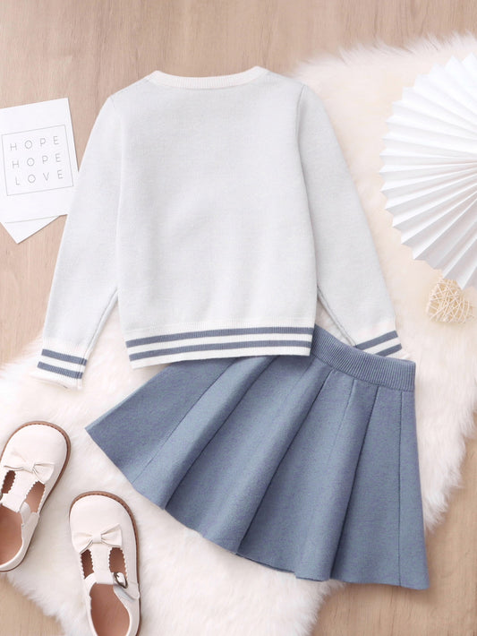 Niñas Falda tejida con suéter con patrón de lazo ribete de rayas