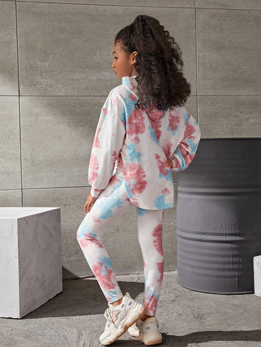 Niñas Leggings con capucha de tie dye de hombros caídos