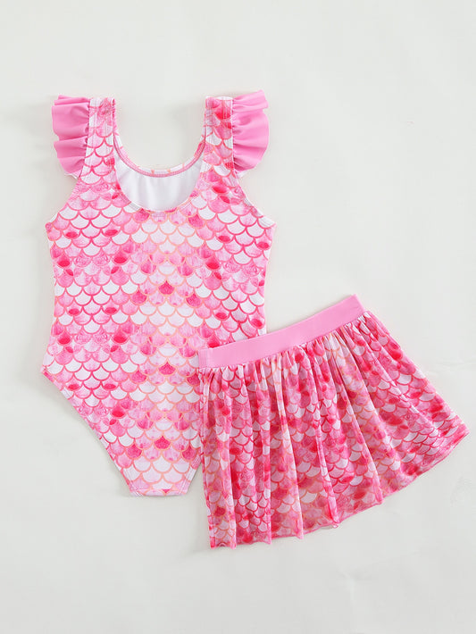 Niñitas Bañador una pieza con estampado de escama de pescado con falda de playa