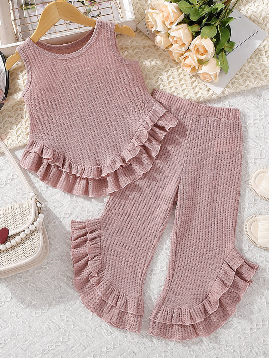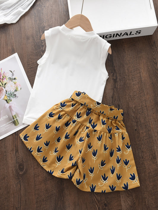 Niñitas con estampado de figura con lazo delantero Top tank & con estampado floral Shorts con cinturón