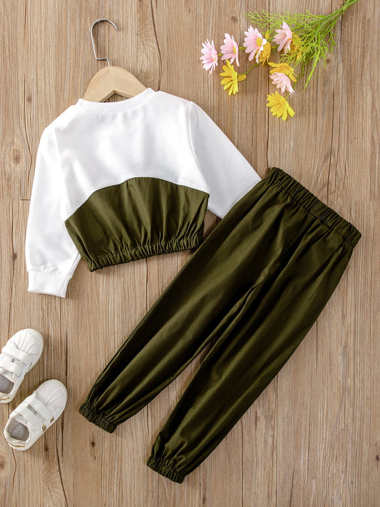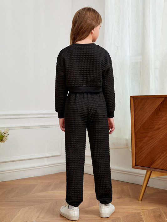 Niñas 1 pieza con diseño de parche de letra guateado Pullover & 1 pieza Pantalones deportivos