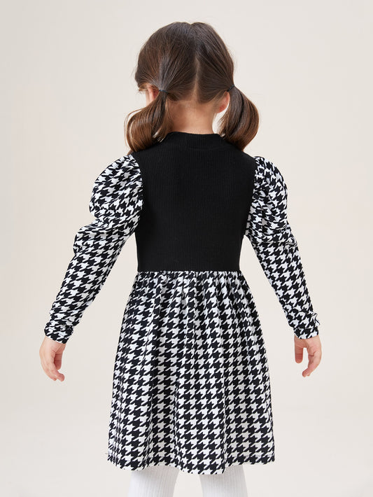 Niñitas Vestido de pata de gallo de manga gigot de cuello alto