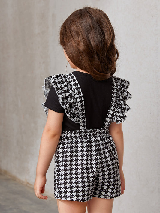Niñitas Camiseta & con estampado de pata de gallo ribete con fruncido Mono