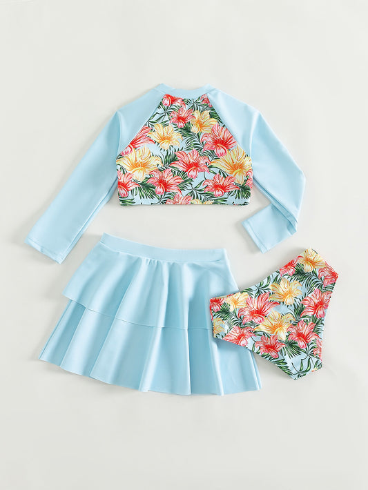 Niñitas Bañador bikini con estampado tropical con Falda de playa a capas