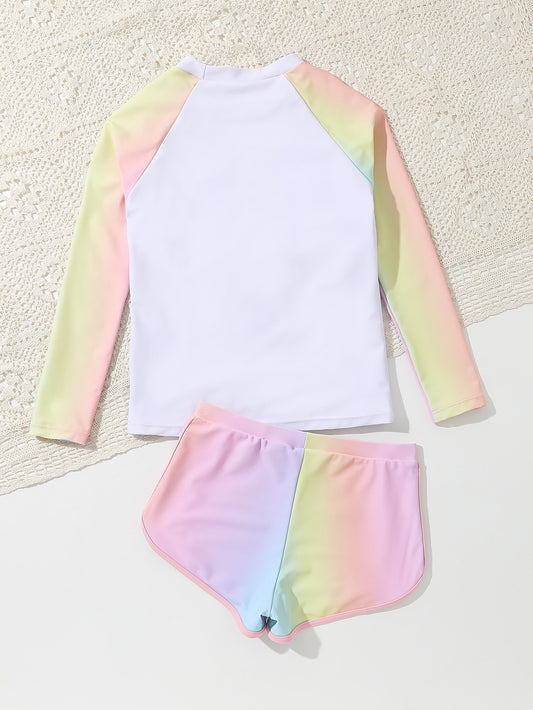 Chicas Bañador bikini de ombré con estampado de letra de manga raglán