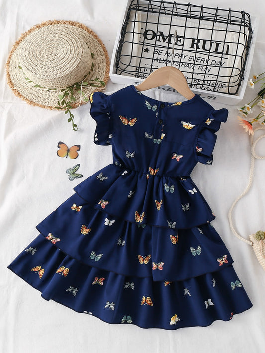 Niñitas Vestido con estampado de mariposa ribete con fruncido a capas