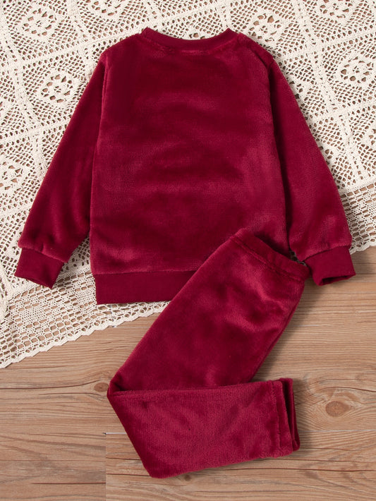 Niñas Pullover con bordado de nube & arcoíris de franela con pantalones