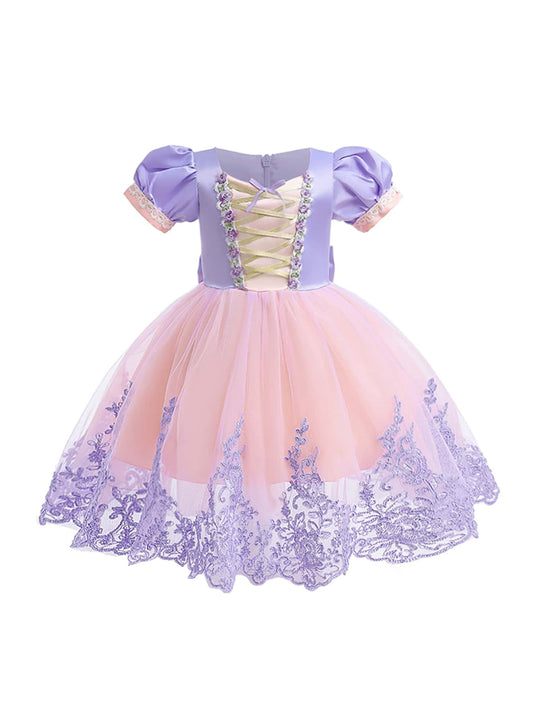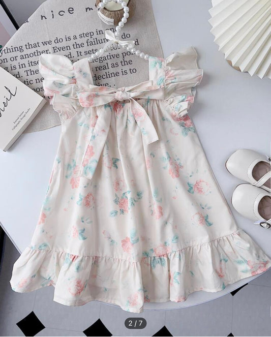 Niñas Vestido con estampado floral ribete con fruncido con lazo delantero