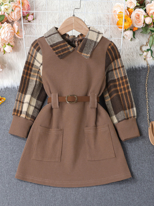 Niñitas tejido de canalé ribete con fruncido Top & con cinturón Falda