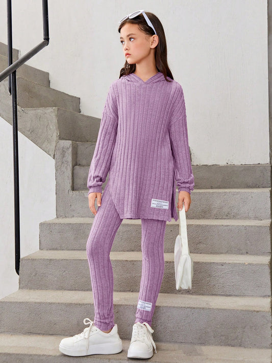 Conjunto Lila para niña Leggings con camiseta con capucha