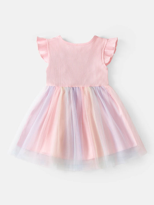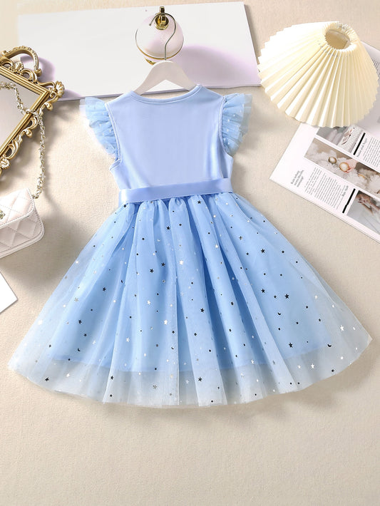 Niñitas Vestido con cinturón con estrella de malla ribete con fruncido